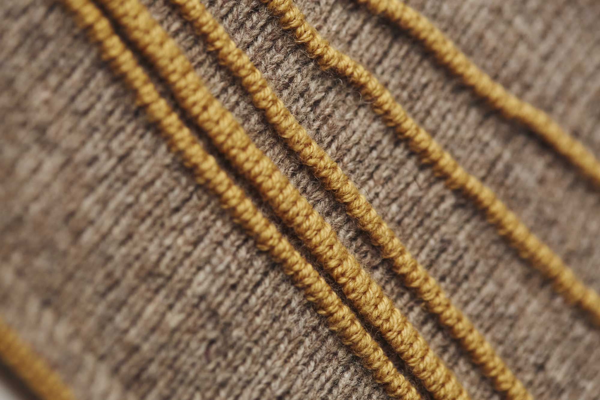 bas de l’échantillon : ourlet plié avec une rayure centrale de couleur différente